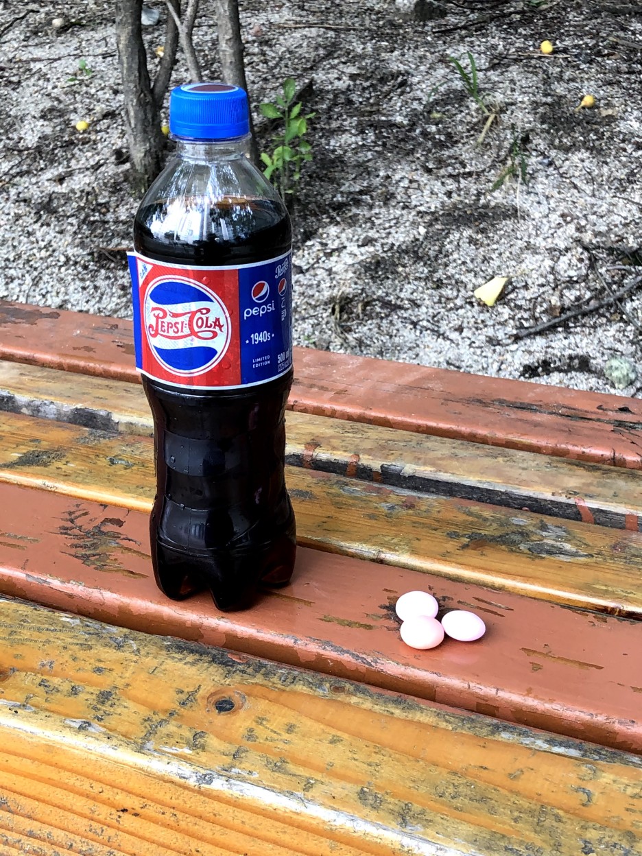 쫄보라서 멘토스 3개만 넣어 봤어요.