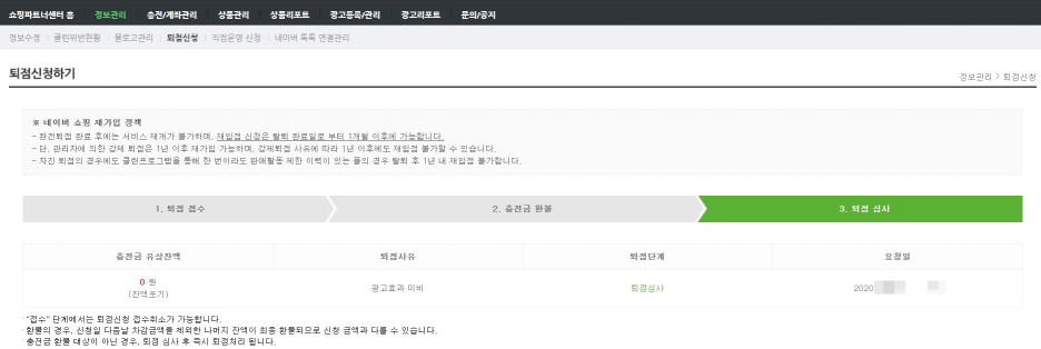 검색광고 탈퇴 처리 후, 스마트스토어 탈퇴