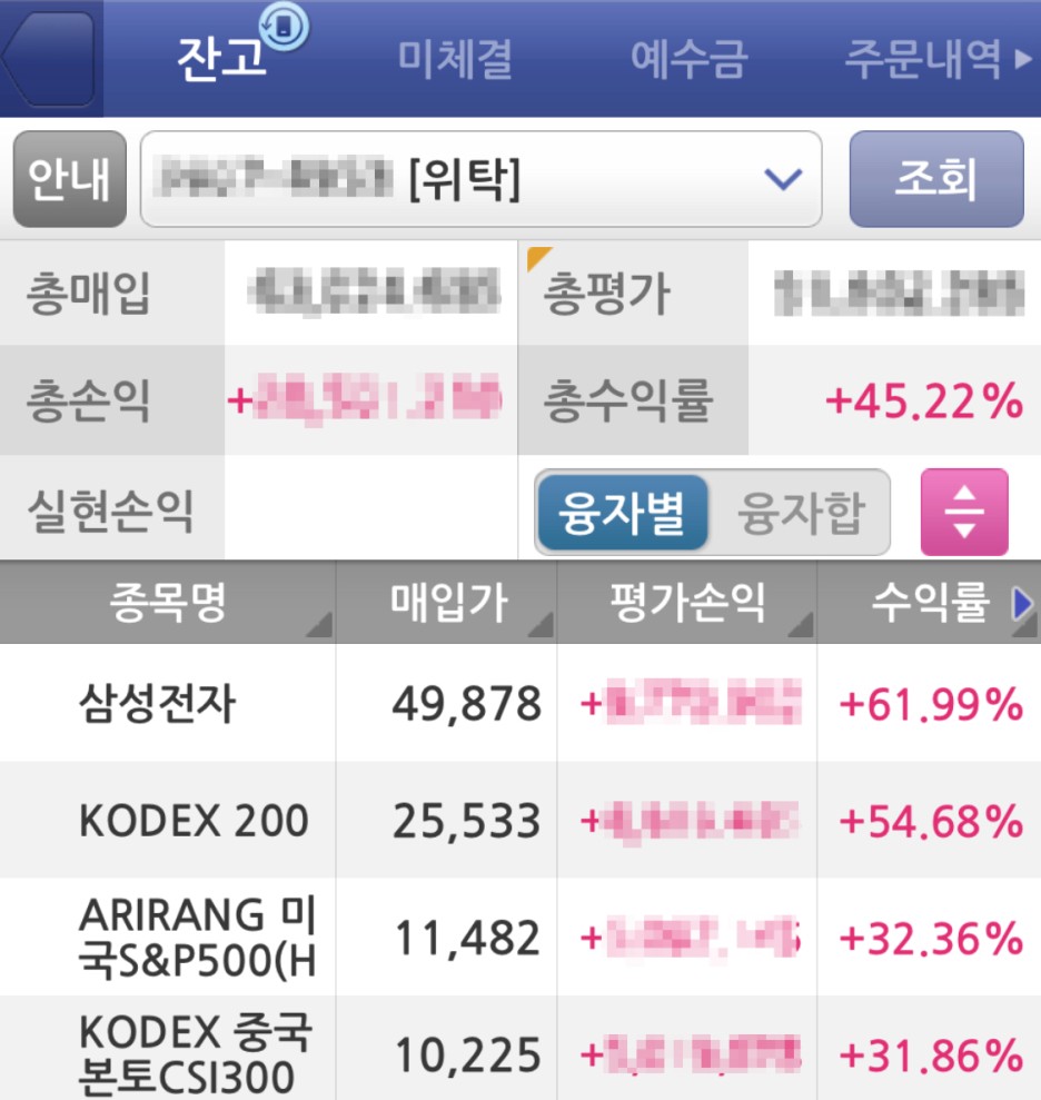 자그마치 총수익률 45.22%를 기록하고 말았네요!!