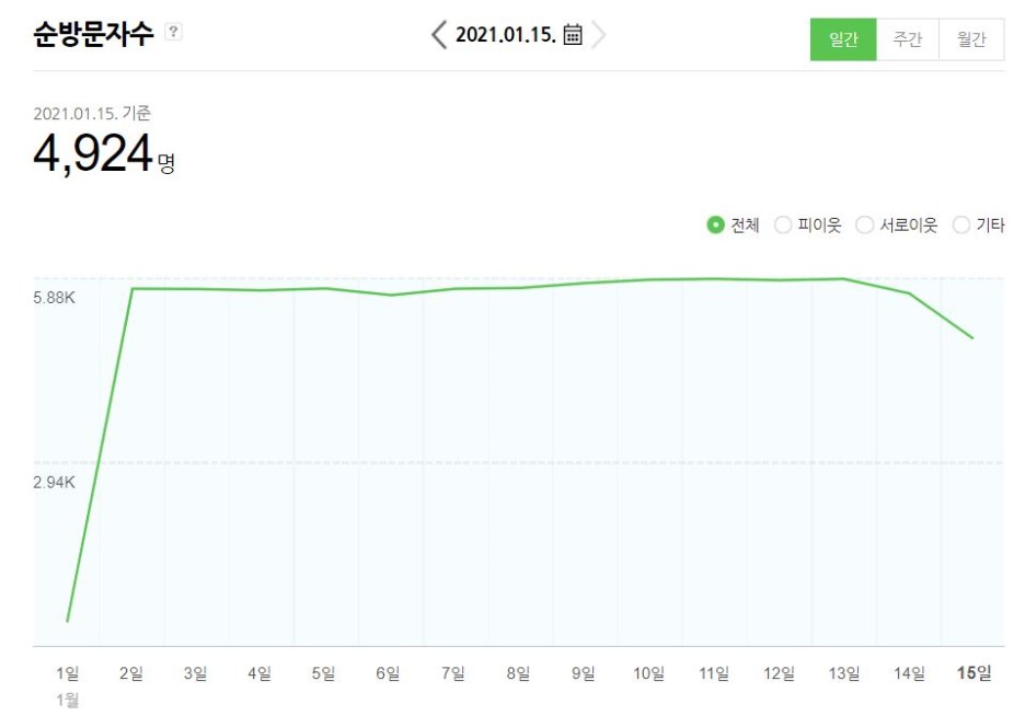 15일 동안 티스토리는 전혀 접속자수 변화가 없더라고요;;