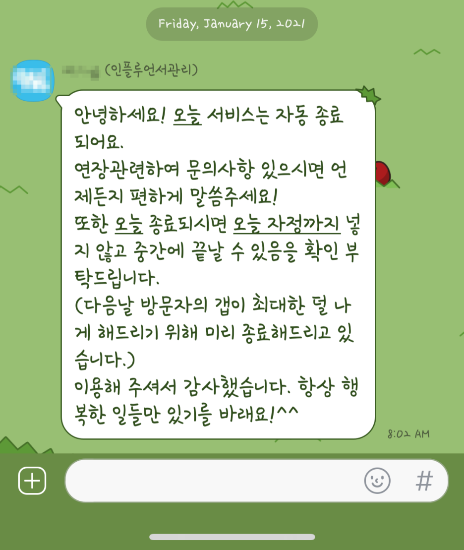 마지막 날 한 번 더 카톡이 왔어요.