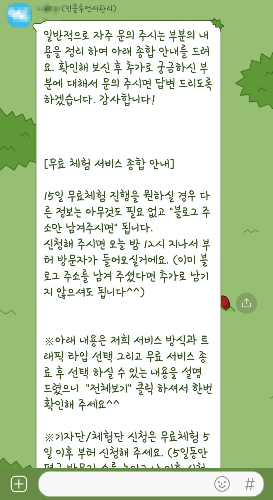체험단 신청은 5일 이후 신청하라는 내용이에요.