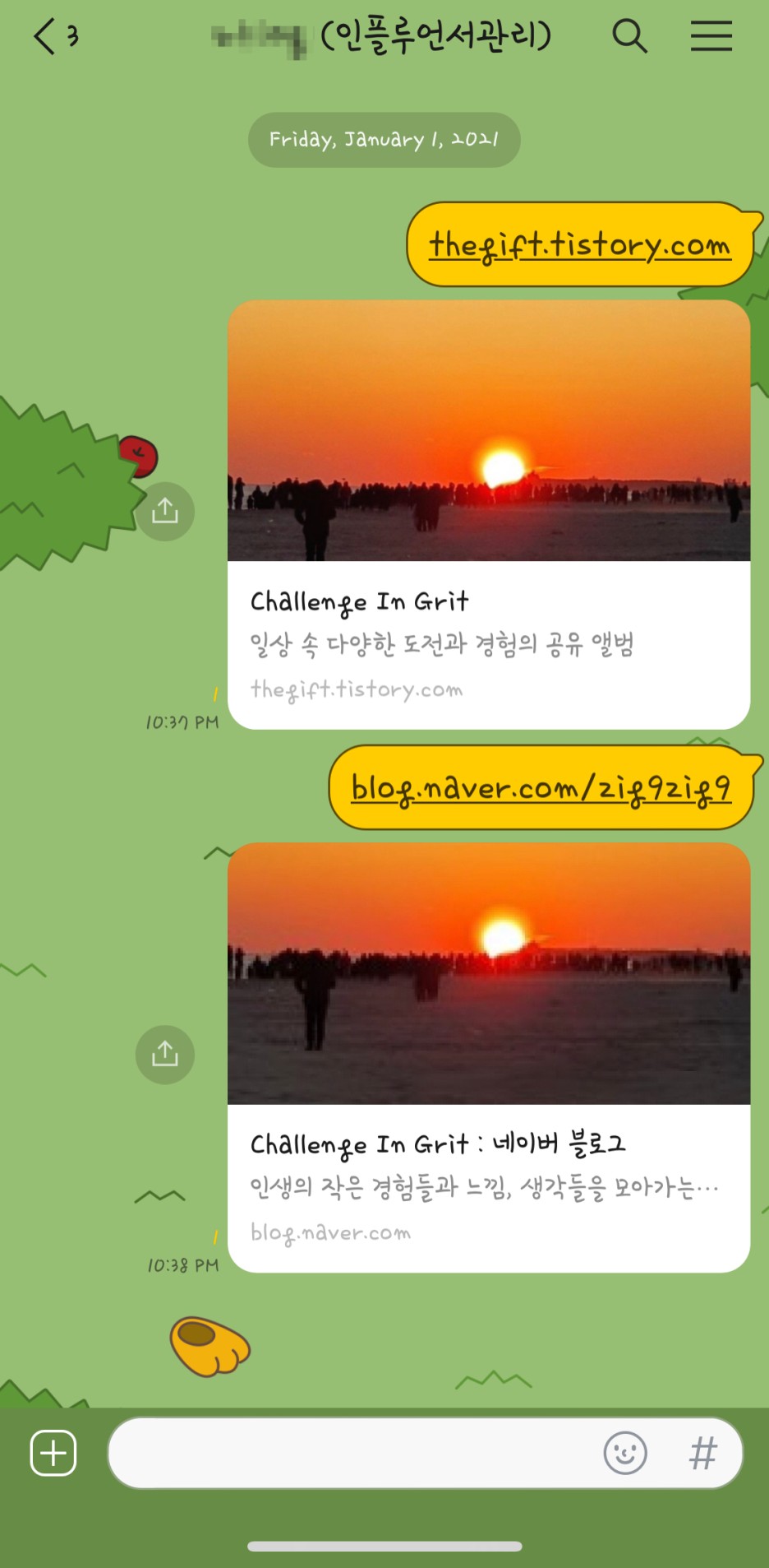 바로 제 블로그 주소를 보냈어요,