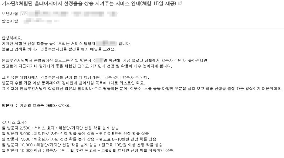 메일 내용을 보니 기자단, 체험단으로 업체에 선정되서