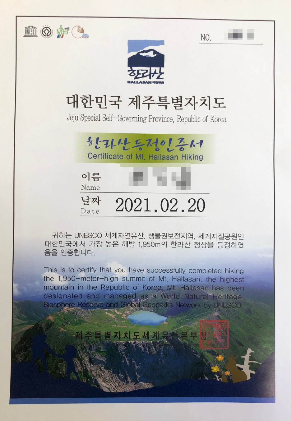 대한민국에서 제일 높은 산을 오른다는 목표와