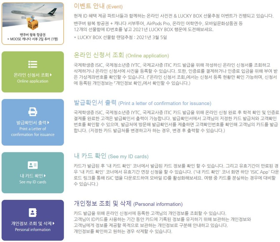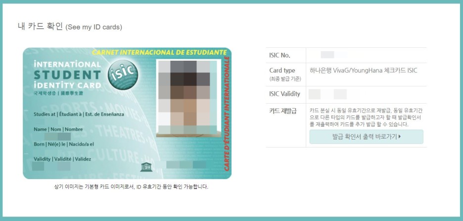 발급 이후에는 ISIC 사이트의 내 카드 확인에서