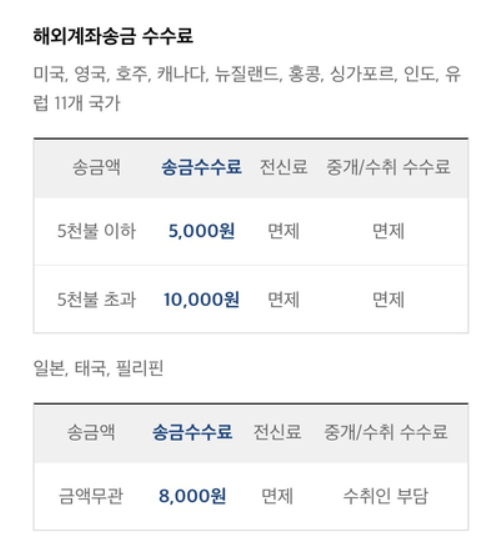 다른 은행들처럼 전신료, 중개수수료, 수취수수료 뭐 이런거 없엤어요.