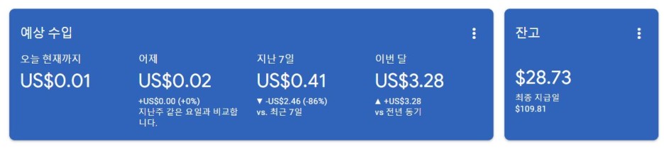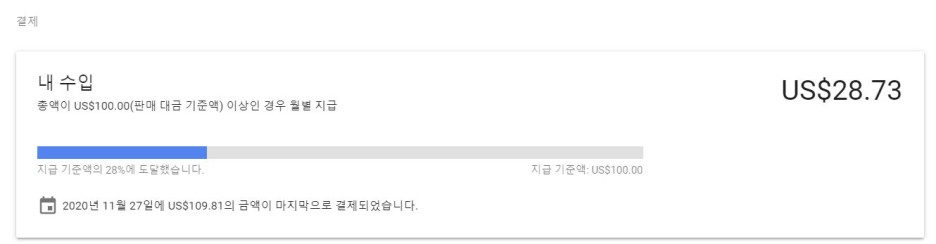 작년 11월 $100 수익 정산을 달성한 애드센스는