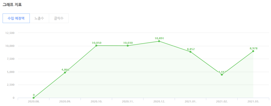 3월 한 달 무슨 이유인지 광고 클릭수가 갑자기 떨어졌지만,