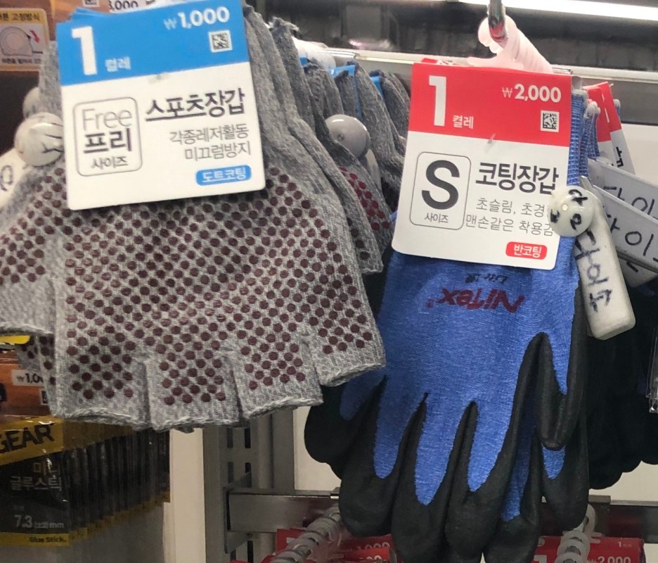 운동용 장갑이나, 작업용 장갑도 한국이 훨씬 저렴하고 질이 좋아요.