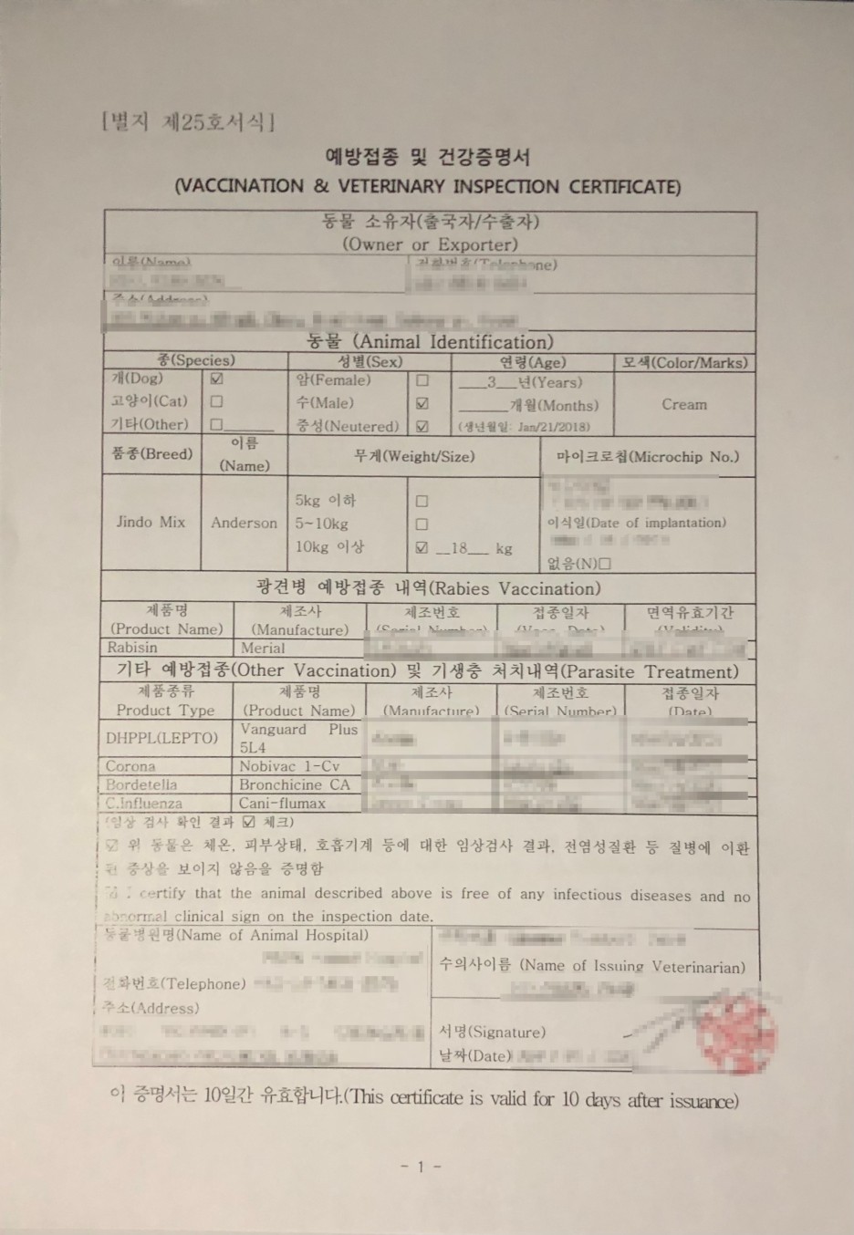 아무튼 여기 검역소에서 증명서를 발급해서 전달받았어요.