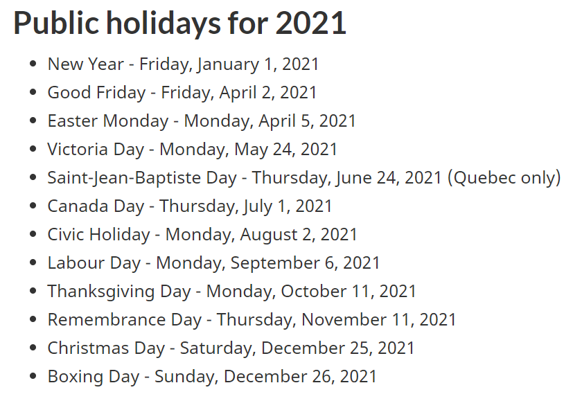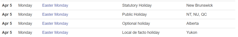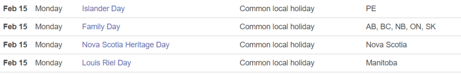 구글에서 캐나다 공휴일을 검색하다 보면 한가지 특이한 점이 있는데요.