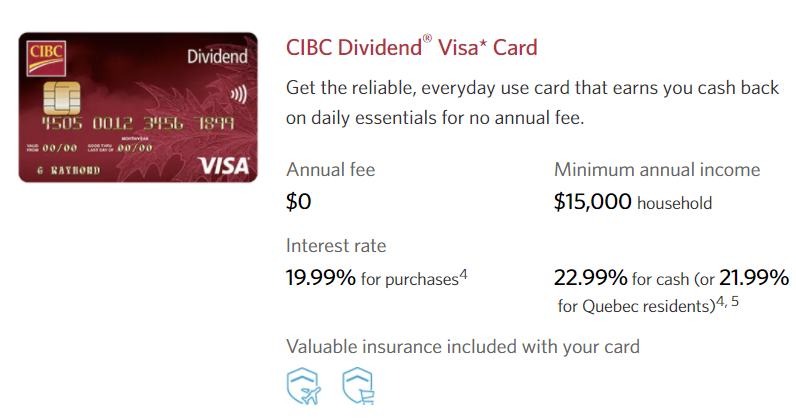 CIBC의 경우 연회비 없고 캐쉬백도 있는 요런 카드를 주로 발급받아요.
