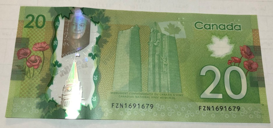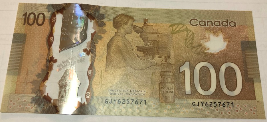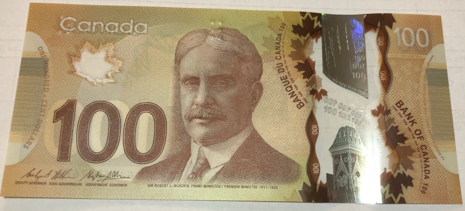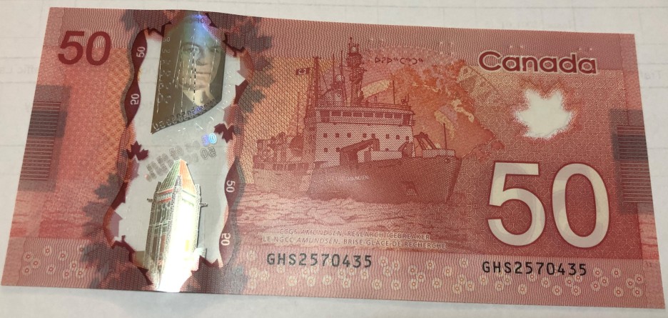 이 지폐는 캐나다 최초의 세로 지폐이지요.