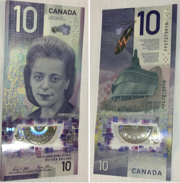 그리고, 2018년 캐나다 10달러의 모습이 바뀌었어요.