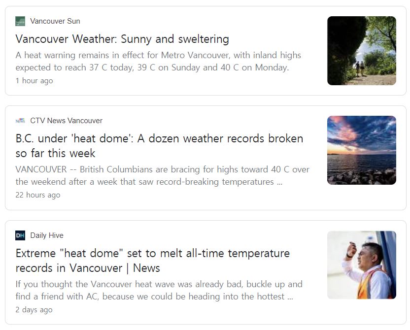 요즘 캐나다 서부의 날씨는 말 그대로 아주 미쳤어요.ㅠㅠ