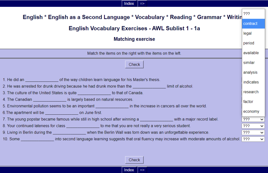Academic English Exercises: The Academic Word List (AWL) A Message to users of this website Hello everyone! Changes are coming! We are rebuilding this vocabulary website to make it more attractive, more user-friendly, and more educational for everyone. N