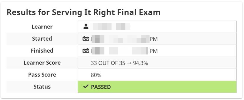 Serving It Right Course 선택하고 자료 다운받아 공부하고 시험 응시해서 패스하면 돼요.