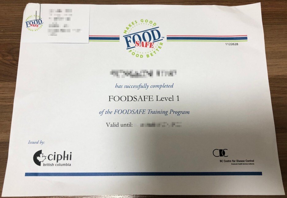 특히 오늘 얘기하는 이 Food Safe는 한국으로 치면 일종의 보건증으로,