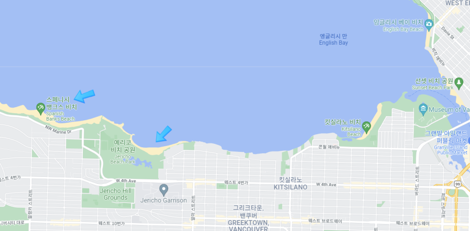 특히 Spanishbank Beach는 무료 주차장도 있어서 이용하기 좋아요.