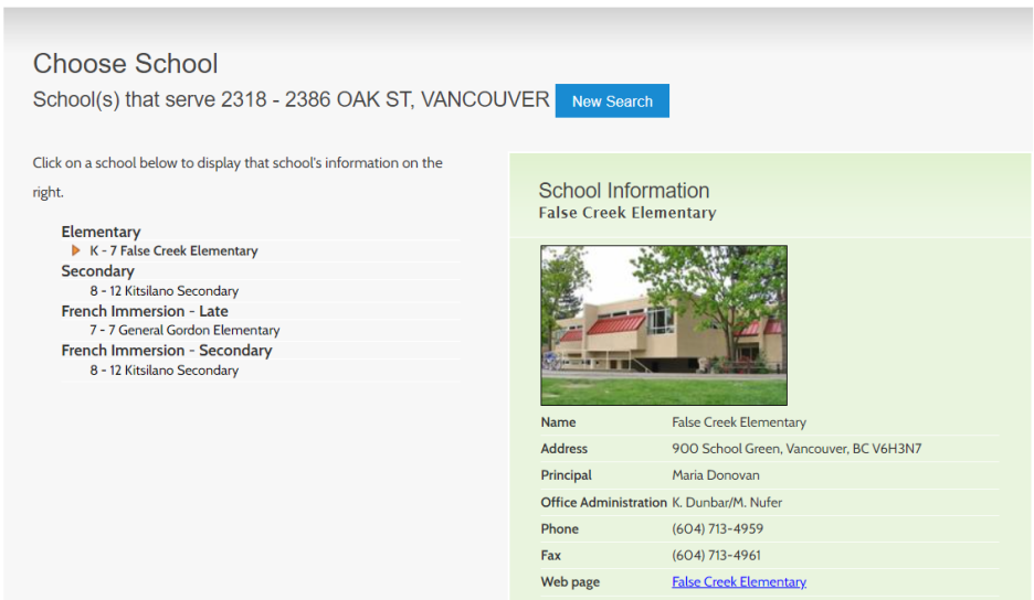 초등학교 뿐만 아니라 세컨더리 및 프렌치 학교까지 안내해주네요.