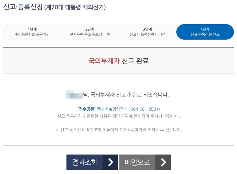 마지막으로 국외부재자 신고 완료 버튼을 눌러줘요.