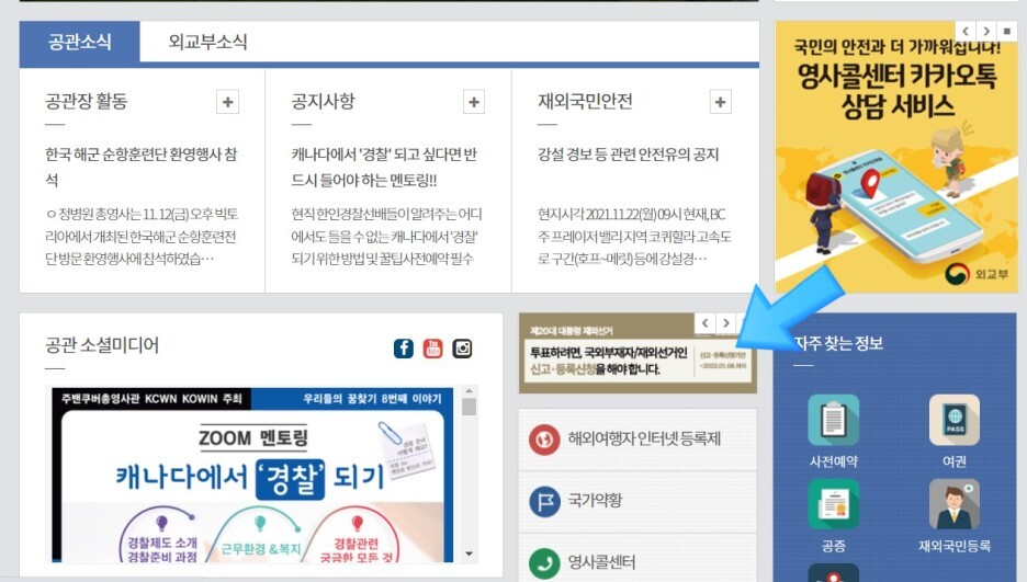 먼저 밴쿠버 영사관 홈페이지에 가보시면