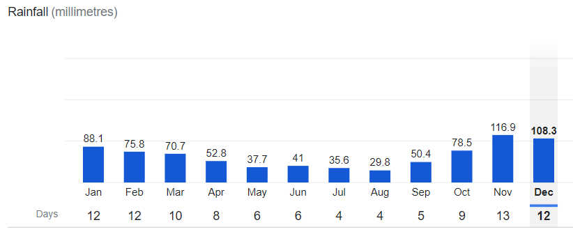 위 그래프에서 보시듯이 11월부터 3월까지는 정말 비의 도시라고 할 수 있죠.ㅠㅠ