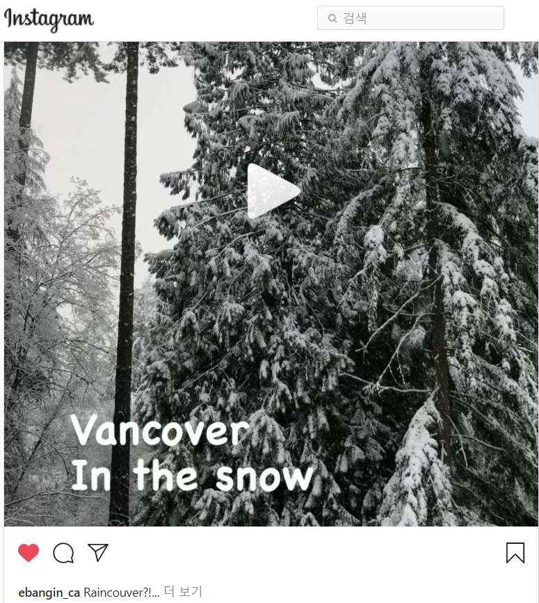 참, 그리고 밴쿠버도 눈이 옵니다. 네, 와요.ㅎ