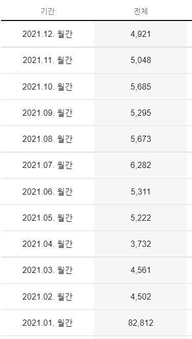 참고로, 네이버 블로그의 경우 한 달에 평균 5,000명 내외의 순방문자가 다녀갔어요.