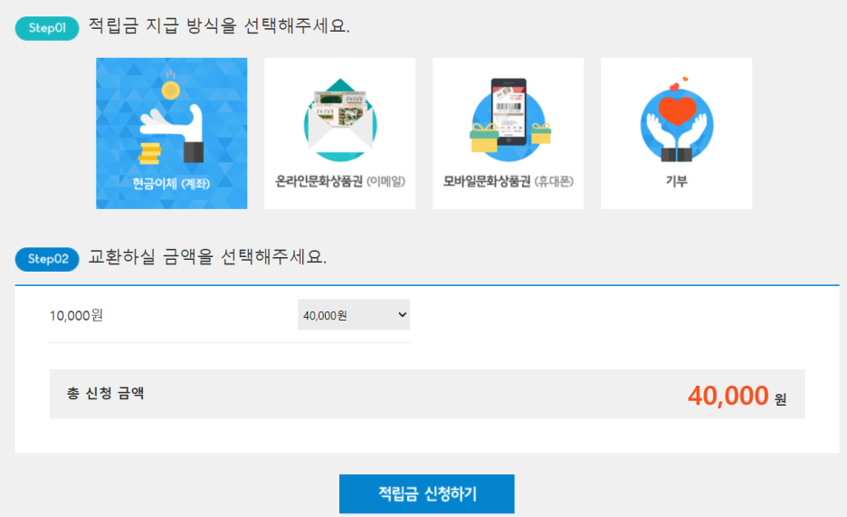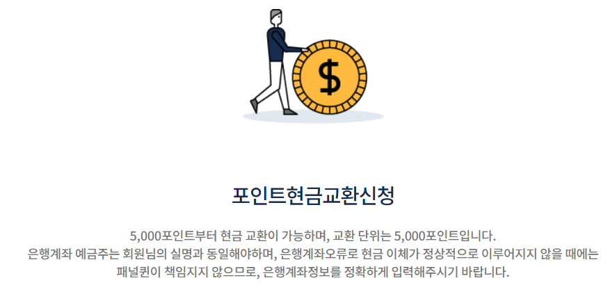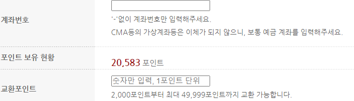 5,000 포인트 단위로 현금교환 신청이 가능하니까,