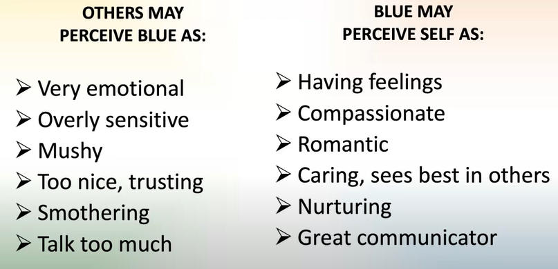 블루에 대한 타인의 시선과 본인의 시선은 아래와 같아요.