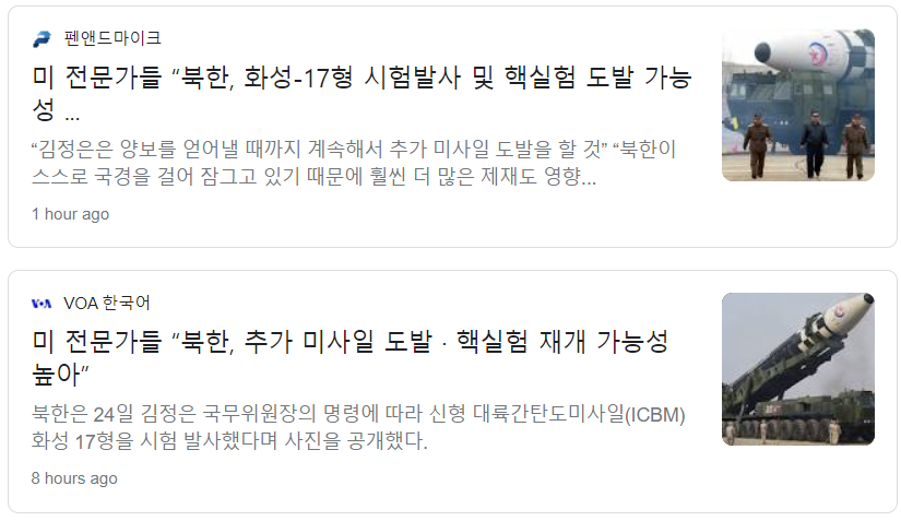 이 와중에 북한은 끊임없이 미사일과 핵실험 도발을 가해오고 있고요.