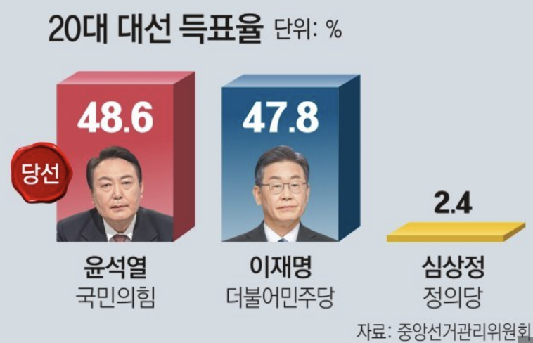 대한민국의 20대 대통령이 결정되었어요.
