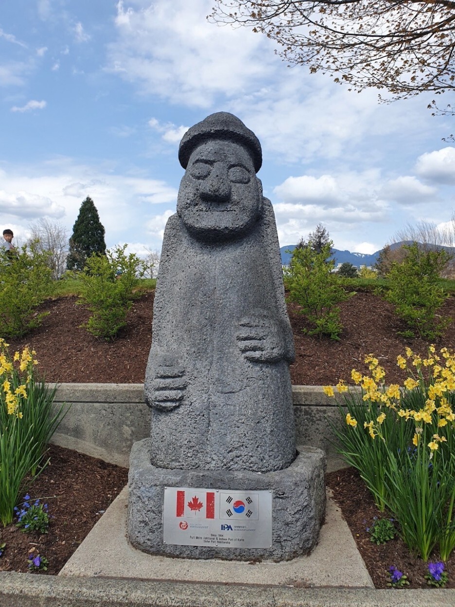 그런데 정말 한국에, 그것도 제주도에서나 볼 법한 큰 돌하루방이 이 곳 캐나다 밴쿠버에 있어요.