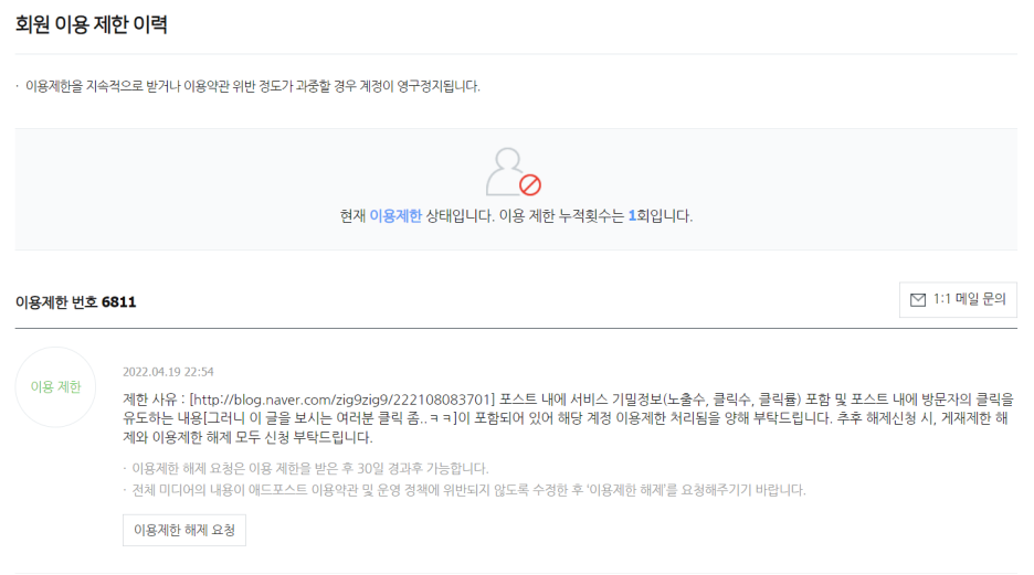 그래서 오늘은 애드포스트 서비스 이용 / 광고 게재 제한 당한 후 해제 신청한 경험을