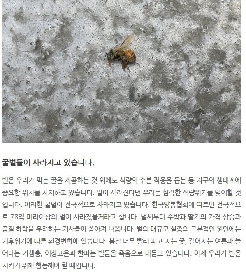꿀벌이 사라지고 있어서 생태계가 위험하다고 하잖아요.