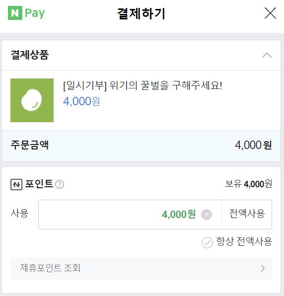 기부하기로 하고 결제 금액에 내가 가진 페이 포인트만큼 적어 넣고요.