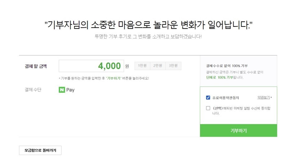 (위 이미지는 이미 기부 완료 후 캡쳐한 거라 0원 이에요;)