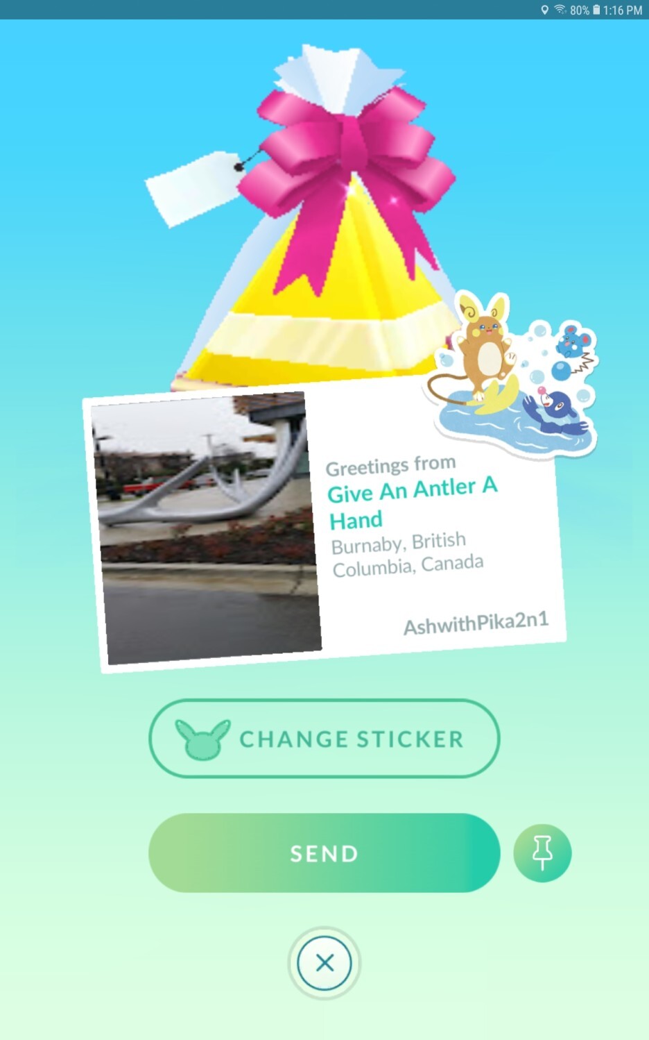 포켓 스탑에서 나온 선물도 주고받는데요, 각종 아이템들이 나와요.
