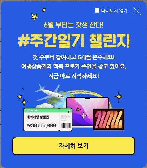 티스토리와 함께 운영중인 네이버 블로그에 들어가 보니 왠 이벤트 안내문이 내 눈길을 끄네요.
