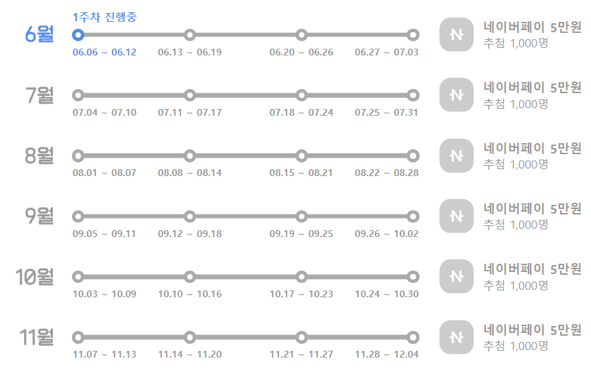 매 달 네이버페이 5만원 씩 6개월동안 총 30만원을 받는다면