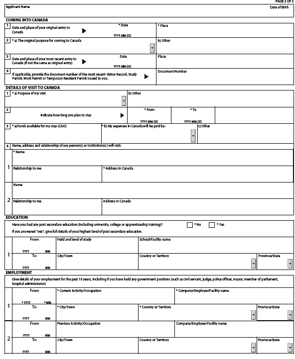 Detail of visit to Canada 항목에서는