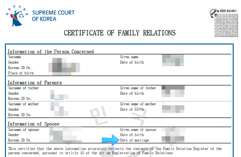 Information of Spouse 아래 우측 하단 Date of marriage 말이에요.