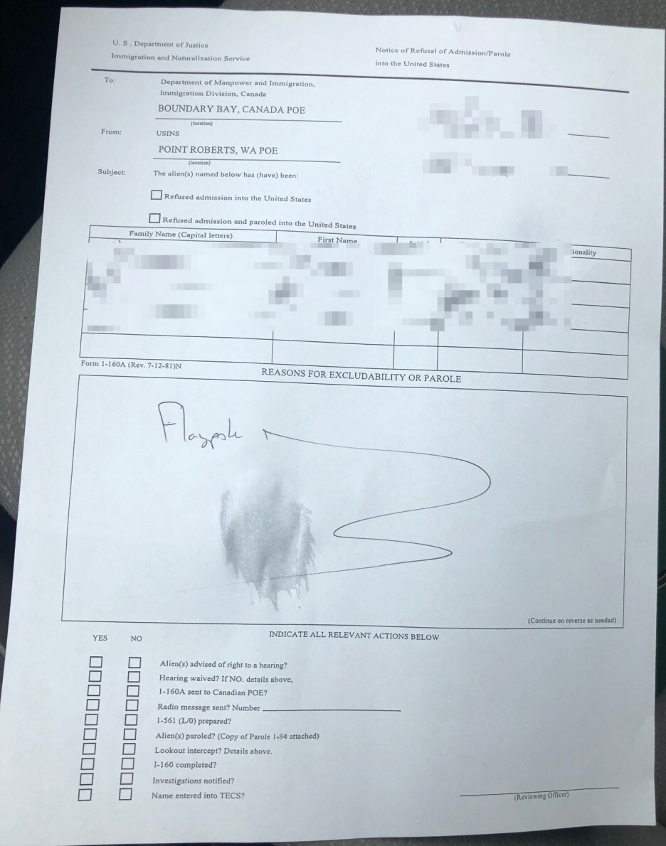 여기도 국경이기 때문에 ArriveCan 작성 안내를 받아요.
