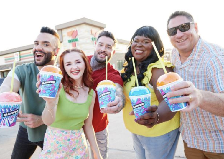 무료로 슬러피 (Slurpee, 슬러쉬 음료)를 나눠줘요.