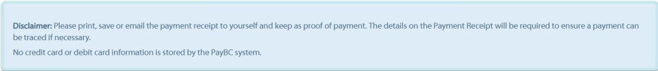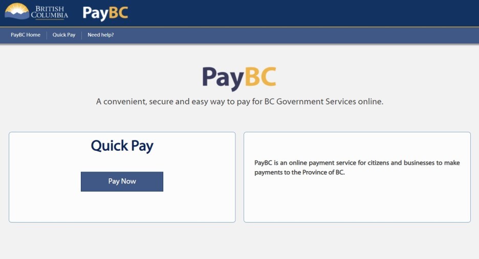 PayBC is an online payment service for citizens and businesses to make payments to the Province of BC.