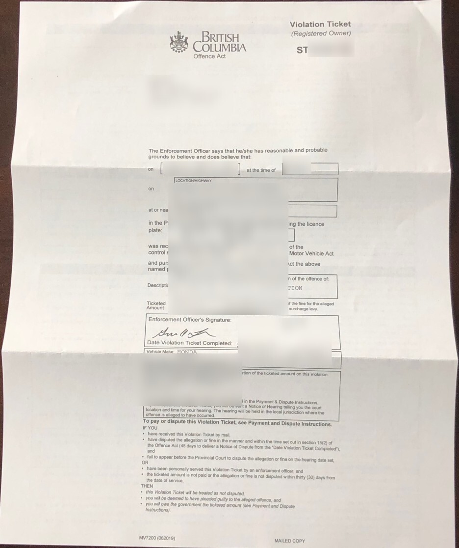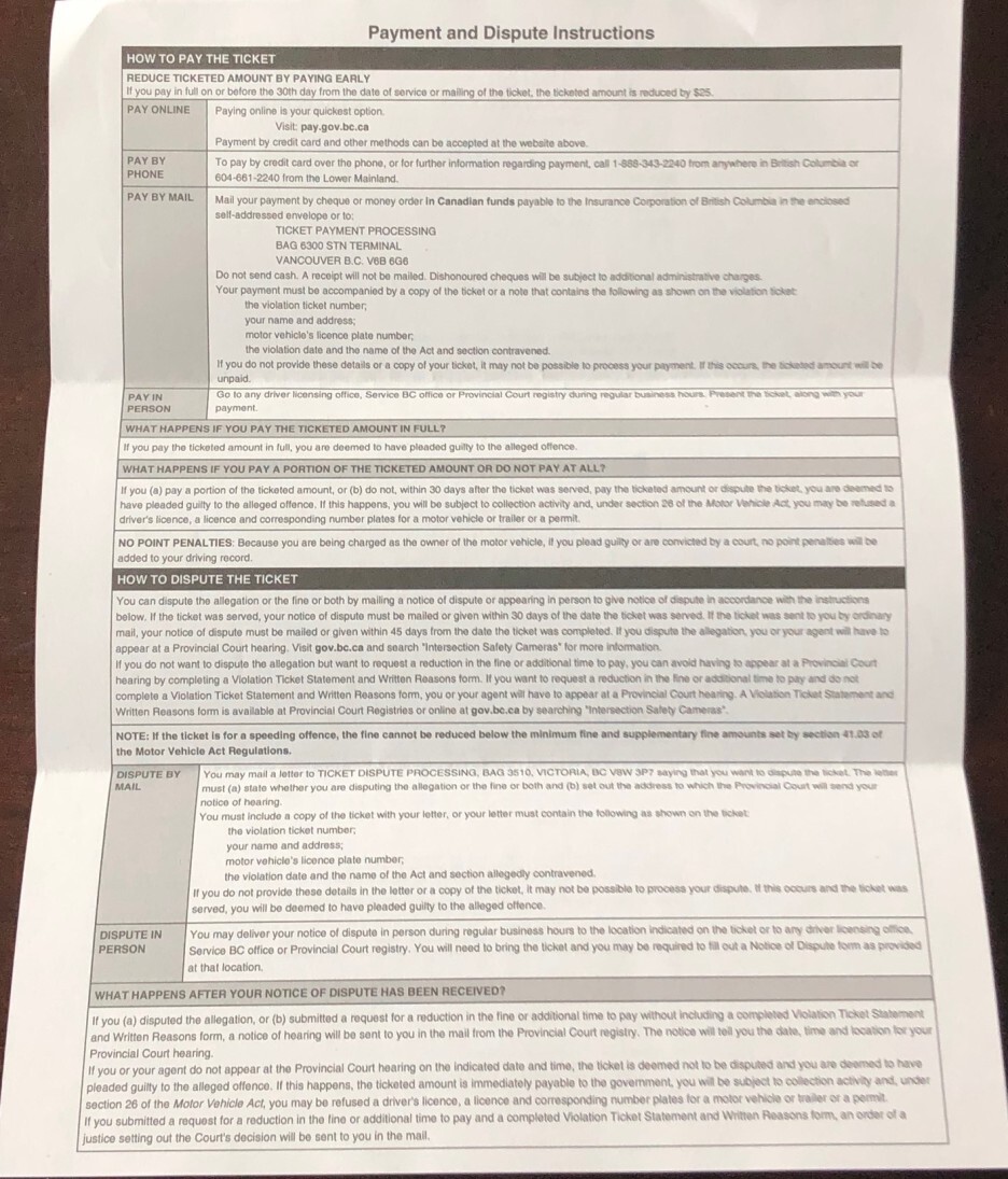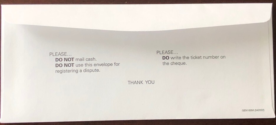 범칙금 티켓은 또 다른 작은 봉투에 들어 있어요.