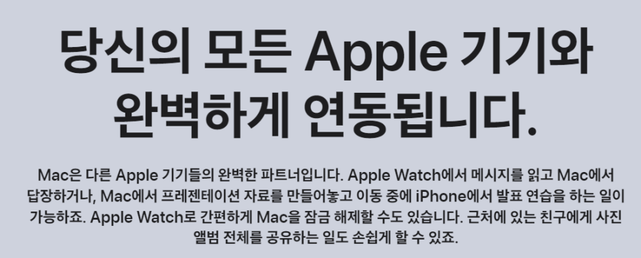 대신 그런 애플 제품들로만 내 작업 환경을 구성하면 모든게 완벽하게 연동되는 거죠.