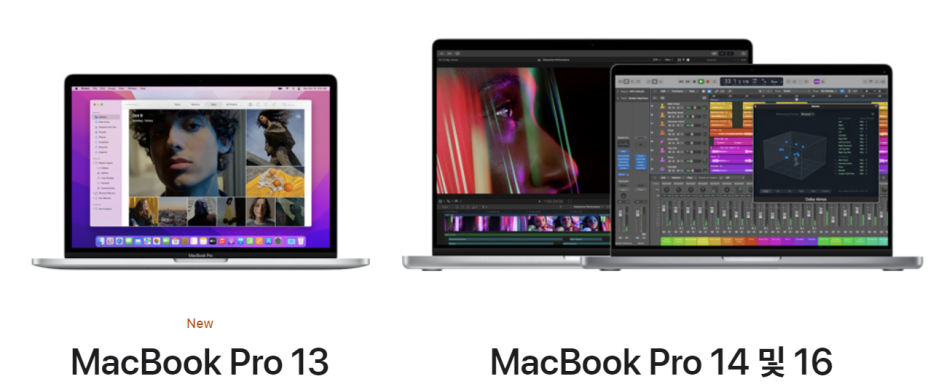 찾아보기 전에는 몰랐는데, 애플 홈페이지에서 보니 맥북 프로가 13,14,16 세 종류네요.